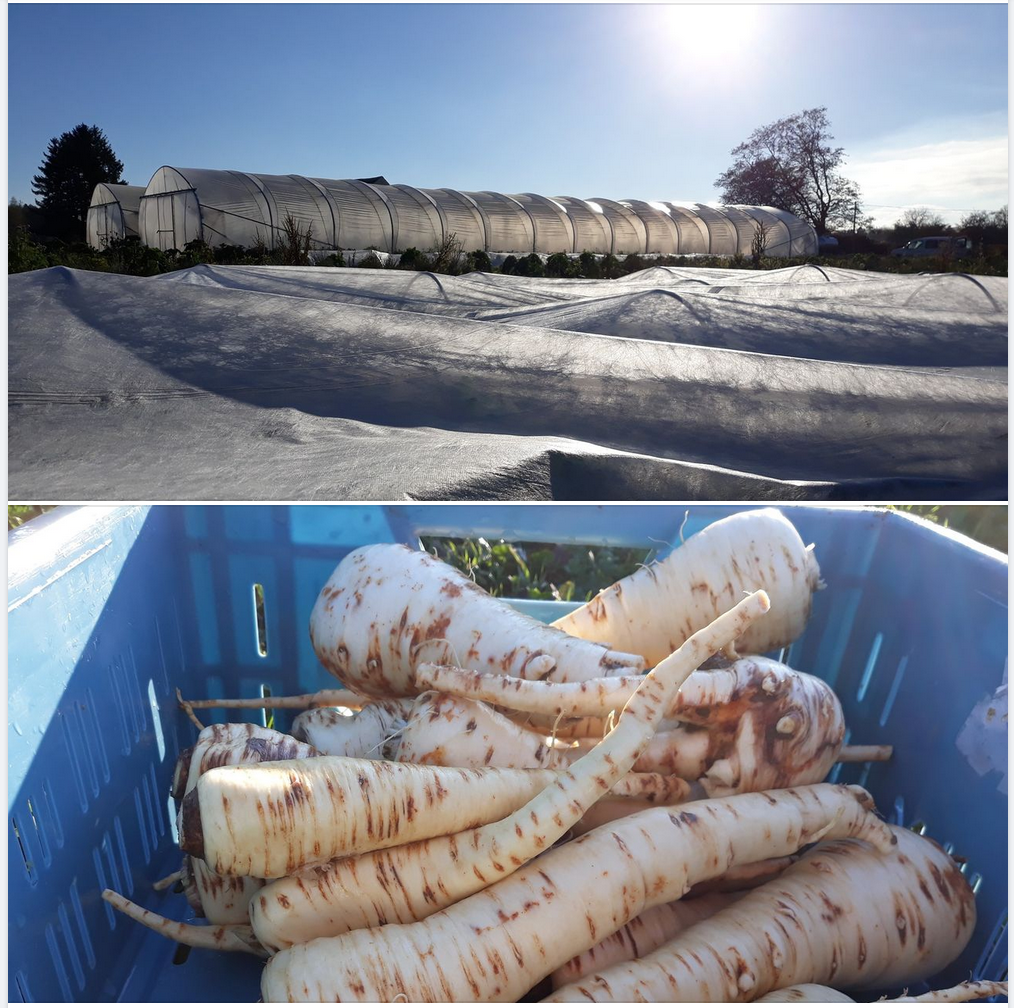 Voilà les légumes de ce samedi 13 novembre: salades, scaroles frisées, panais, carottes, chou rave, bettes, betteraves, poireaux, choux blancs, choux rouges, chou kale, potimarrons, courges spaghetti, céleri rave, rutabaga, radis noir, navets, persil plat, PDT de chez Jean-Philippe (à Macquenoise), échalotes et oignons de chez Cyrille (à Presgaux), pommes et jus de pomme de…