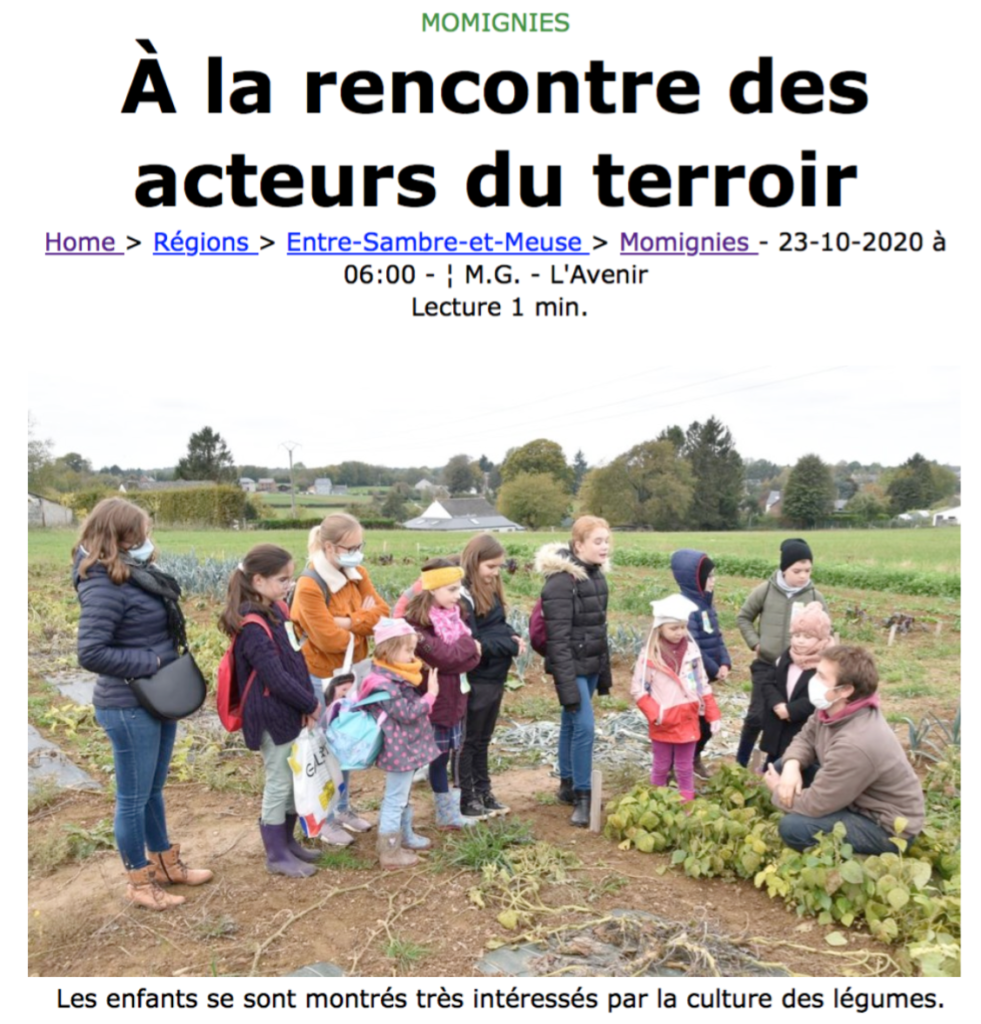 Pour ceux qui voudraient voir ou revoir le reportage de Télésambre sur la visite du potager par les enfants de l’école de Seloignes, la vidéo est ci-dessus ⬆️ Et pour les légumes, c’est ce samedi matin où vous pourrez choisir : des salades, des scaroles frisées, des panais, des carottes, du chou rave, des fenouils,…